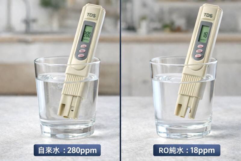 關於 RO 逆滲透純水: 如果您家中安裝了 RO 系統,TDS 通常會降至 50 ppm 以下。這代表水質極其純淨安全。不過,如果您追求極致的健康與口感,將 TDS 調整回 50-150 ppm 則是專家公認兼具健康與美味的完美比例。