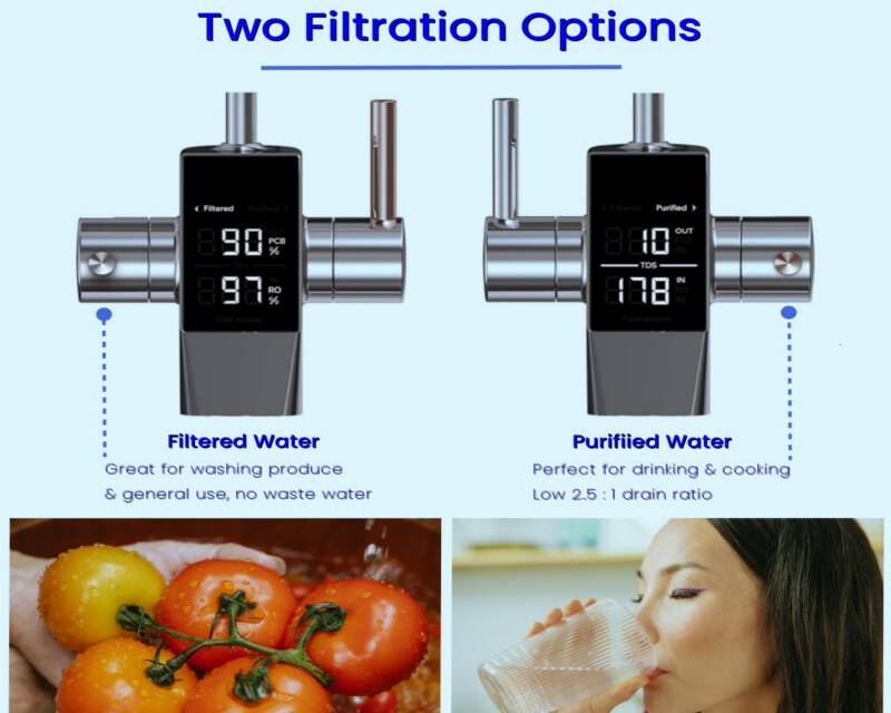 雙路出水設計: 設有獨立開關,分別控制過濾水與純淨水,只需簡單切換即可輕鬆選擇所需水源。